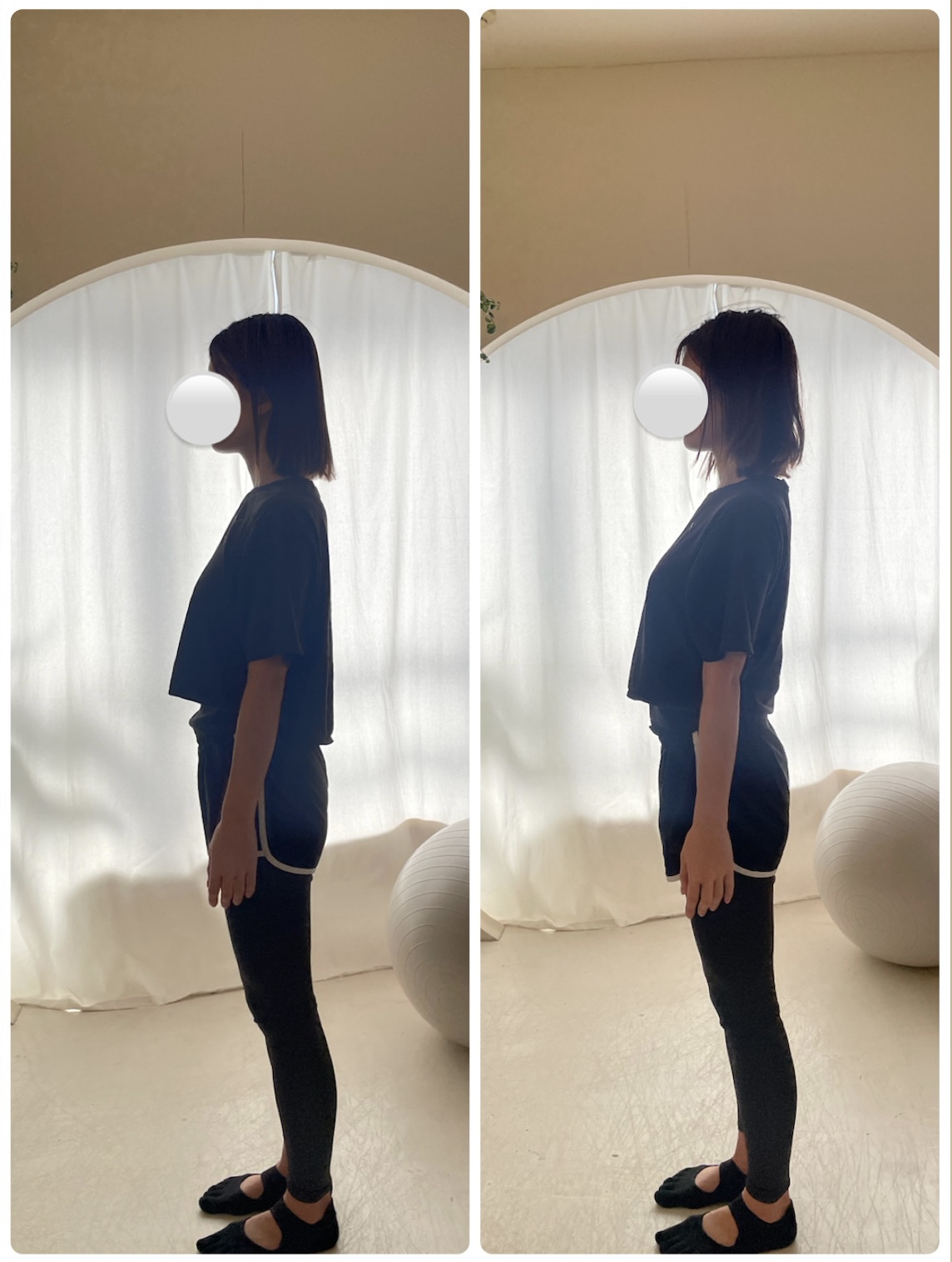 こちらの写真はレッスンに継続して通ってくださっているお客様の立ち姿の変化です。